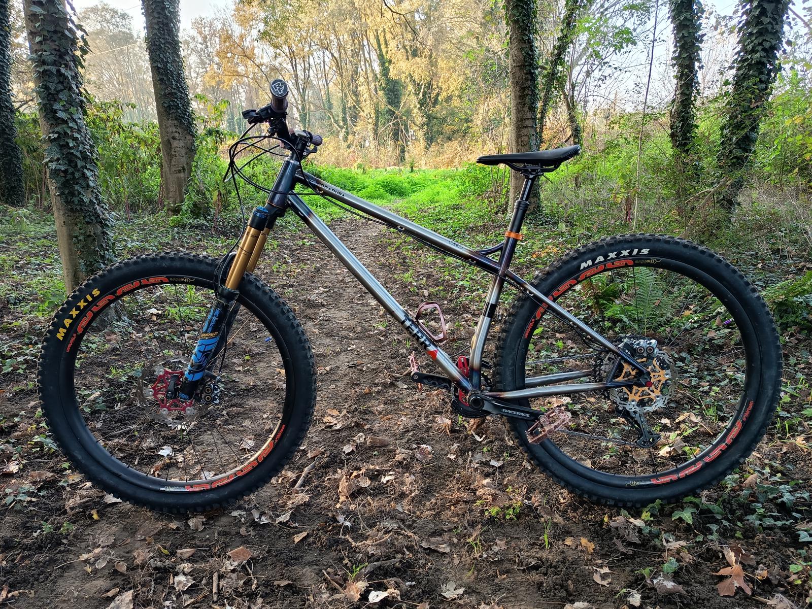 #bikeoftheweek dopo aver degradato una S-works mi sono chiesto se potevo fare di peggio.. certo, basta prendere una bici senza senso come una front da enduro e montarla "a cazzum" con pezzi avanzati in garage..! telaio Terra Codadura in acciaio L-xl forcella Fox 36 factory 170mm manubrio "hallo" Spank vibracore stem renthal manopole raceface ruote lightcarbon con mozzi xt-xtr adesivi ruote "asimmetrici" AliExpress dischi bucklocks 200ant 180 post freni magura mt7 cambio slx pedivelle raceface 175mm corona 30t con ochain porta borraccia cnc in metallo telescopico tranz-x 170mm sella fizik gomme 2.5 assegai - dhf